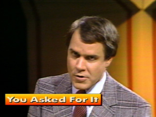 This 30-minute pilot is an attempt to revive the old YOU ASKED FOR IT series. People will write in to us with some-thing that they want researched and we go out and film it. Stories in the pilot include how they record the voices of Charlie Brown characters, the pyramids of Egypt, Kung Fu, Voodo, Roger Moore telling the story of the character "M" In James Bond and, a quick interview with Ronald Reagan's brother Neil. Rich Little is the host with jack Smith as a guest host. Music by Ed Bogas and Judy Munsen. |